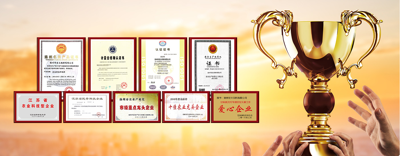 先后榮獲江蘇省飼料質(zhì)量合格產(chǎn)品、江蘇省名牌產(chǎn)品、揚(yáng)州市消費(fèi)者滿意商品、揚(yáng)州市質(zhì)量計(jì)量信得過(guò)產(chǎn)品等稱號(hào)。